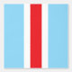 This festive design features sporty vertical bright red, baby blue, and white racing stripes.