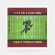 Tackle spills and keep your game day gathering pristine with these sporty football party napkins! The ultimate addition for any spirited Washington fan, ensuring your tailgate or home parties spotless while celebrating your favourite football team. Featuring a vibrant burgundy and gold border, each napkin displays a classic green football field, complete with yard lines and a dynamic running football player. The top of the design playfully reminds everyone to "LET'S PLAY A CLEAN GAME," while the bottom delivers a funny warning: "PENALTY FOR MESSY HANDS" These customisable phrases make cleanup part of the fun, adding an extra layer of themed excitement to your food service.