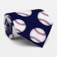 Handsome sportsman neck tie done in dark blue. Graphics of a white and red baseball pattern covers the front of the tie. The perfect tie for any baseball player or fan, and makes a great gift idea.