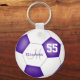 This personalised girls' soccer keychain features a classic soccer ball with purple and white panels - customise the player's name, monogram and jersey number - by katz_d_zynes