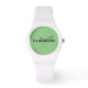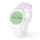 Custom, sporty, white silicon watch with green face and motivational quote reminds one' to stick to one's convictions and beliefs. Great inspirational gift.