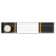 This colourful, sporty design features an extra wide white vertical centre stripe highlighted with floating slender golden brown racing stripes against a vibrant black background.