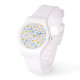 Sporty White Wristwatch: Ditzy White Daisies: Blue Watch