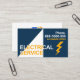 A spotlight shines thru the blue darkness onto the "electrical service" signage, a yellow lightning spark beside it shows its power. The power is supplied by your prestigious name and contact details at the top.