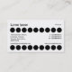 A stylish modern business/profile card template with a spot design. Thirty six aligned spots on the front with company name in the top left with type of business/quote on the right. Name and other details on the reverse in the same theme but with fewer rows of spots to accommodate the text. N.B The background colours of this card can be customised.
