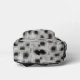 This digitalised, graphic design, of black spots, with brown edges-is patterned against, an embossed, silver, and black, background.