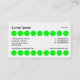 A stylish modern business/profile card template with a spot design. Thirty six aligned spots on the front with company name in the top left with type of business/quote on the right. Name and other details on the reverse in the same theme but with fewer rows of spots to accommodate the text. N.B The background colours of this card can be customised.