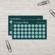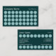 A stylish modern business/profile card template with a spot design. Thirty six aligned spots on the front with company name in the top left with type of business/quote on the right. Name and other details on the reverse in the same theme but with fewer rows of spots to accommodate the text. N.B The background colours of this card can be customised.