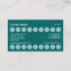 A stylish modern business/profile card template with a spot design. Thirty six aligned spots on the front with company name in the top left with type of business/quote on the right. Name and other details on the reverse in the same theme but with fewer rows of spots to accommodate the text. N.B The background colours of this card can be customised.