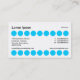 A stylish modern business/profile card template with a spot design. Thirty six aligned spots on the front with company name in the top left with type of business/quote on the right. Name and other details on the reverse in the same theme but with fewer rows of spots to accommodate the text. N.B The background colours of this card can be customised.