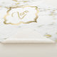 Elegant spotted gold glitter over white marble stone texture. Custom monogram
