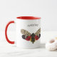 This coffee mug features an illustration of that dastardly invasive species the spotted lanternfly and your own name or short message in dark brown letters. Find coordinating spotted lanternflies themed gifts and products in the Spotted Lanternfly Collection from Asterisk Designs.
