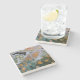 The coasters are gorgeous, a quality feel and heavy weight. They look like a precious archeological find. A rustic stone juxtaposed with a modern floral black and white print. I like the way the print goes slightly imperfect on the cut stone edges giving them a kind-of natural beauty.