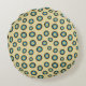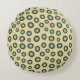 Round throw pillow with a pattern inspired by the beautiful blue ringed octopus. Buttery yellow background with rings of bright blue, black and brown.