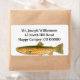 Spotted trout, fishing themed shipping labels with bold, printed, black text. A fish image at the bottom of white labels.