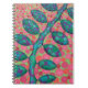 Artsy notebook with a bold abstract design of a field of flowers behind a leafy vine made of many brightly coloured spots.