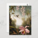 Martin Johnson Heade Orchids and Spray Orchids with Hummingbird postcard. Oil painting on canvas from 1890. Martin Johnson Heade remains one of the great hummingbird painters of all time. Heade spent time in diverse South American jungles painting a variety of different orchids and hummingbirds. Spray Orchids with Hummingbird features a purple breasted hummingbird sitting on a branch of spray orchids above a larger pink orchid. A great gift for fans of Martin Johnson Heade, orchid paintings, hummingbird paintings, and naturalist art.