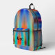 Orange, blue and blue green spray painted lines cover this printed backpack. Eye-catching design, a bit grungy, still looks nice.