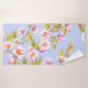 Sprigs of flowering apple or cherry trees on the b bath towel