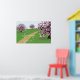 Beautiful spring image of flowering trees, on a decorative vector art poster.
