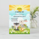Cute colourful spring kids birthday party invitation with cute animals and spring flowers.