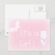 Spring baby girl - personalised birth announcement postcard. Delicate text design in light pink with white text "It's a Girl" .It features the white silhouette of a tulip and a butterfly .Ideal for announcing the birth of a cute baby girl who was born in spring .