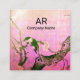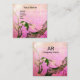 SPRING BIRD AND FLOWER TREE MONOGRAM Pink Brown Square Business Card