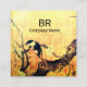 SPRING BIRD AND FLOWER TREE MONOGRAM Yellow Brown Square Business Card