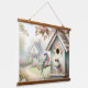 Spring Birdhouse With Pastel Flowers And Bird Hanging Tapestry