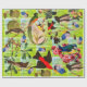 SPRING BIRDS,FEATHERS,FRUITS Music Notes Green Wrapping Paper