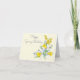 It has a sunshiny cluster of Daffodils and small blue flowers with a touch of greenery.