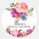 Pretty bridal shower favour seal featuring a watercolor pink & purple floral bouquet.