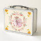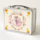 This is a standard metal lunchbox that appears to work just fine. We designed this box ourselves with an uploaded photo and custom text on the front and back. It looks absolutely beautiful except the front of the lunchbox is not centered like it shows in the photo. The print borders don't align with the inset flat part of the box where the preview photo online showed it perfectly centered in there. The back looks nice and centered though.