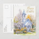 Celebrate Easter with timeless elegance and soft spring beauty. This Spring Blossoms Church Scene Happy Easter Holiday Postcard features a delicate watercolor illustration of a charming country church surrounded by blooming florals and fresh greenery. The artwork is rendered in a serene pastel palette of soft blue, blush pink, warm golden yellow, sage green, and gentle ivory, creating a refined and peaceful seasonal aesthetic.