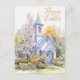 Spring Blossoms Church Scene Happy Easter Holiday Postcard