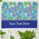 A pretty Kitchen Towel (Tea Towel) that you can personalise, with a pattern of creamy white Mock Orange Blossom and bright pink Weigela on a sky blue background. The design is from a handpainted watercolour by Judy Adamson. You can simply delete the text if you wish.