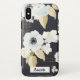Chic and elegant, this Spring Light Blue and White Flowers on Navy Background phone case is the perfect way to protect your phone while also adding plenty of style. Features a navy blue background with gold scratches, light blue and white flowers with soft green leaves. The navy blue typography "Anabelle" can be changed to fit anyone's name.