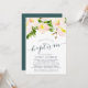 Elegant and modern floral baptism or christening invitation features a bouquet of ethereal pastel watercolor flowers in shades of rich cream and blush pink, with lush green botanical accents. Personalise with your baptism details in elegant midnight blue lettering accented with handwritten style calligraphy. Includes space for both the religious ceremony and a party or reception to follow. Cards reverse to solid jasper green.