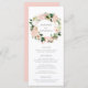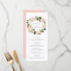 Elegant custom wedding menu card featuring a your names encircled by a wreath of blush pink hydrangeas & white flowers with faux rose gold foil and green leaves. Personalise the custom wedding menus by adding your wedding menu details below. The menu reverses to a solid blush pink background with space for text and photos. Designed to coordinate with our Spring Blush Floral wedding collection.