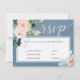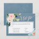 Spring blush pink and dusty blue peonies wedding RSVP card