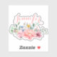 Custom sticker features stylish script writing with a floral bouquet design with beautiful watercolor spring flowers, and greenery, in a gorgeous colour palette. Personalise with a first name.