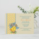 A cute vintage image of a baby chick with an Easter bonnet inspired this delightful invitation. The card has a sand-coloured background intersected with a sunny dotted ribbon that is trimmed with blue scallops. It's a terrific invitation for any springtime celebration.