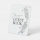 Stylised spring floral line art please sign our guest book table sign. Simple line art featuring, spring blossom, tendrils and butterflies along the side. A simple monotone black and white design to personalise with your words if required. Matching signs and other wedding items and colour options are available and or can be created on request. © Original hand drawing and design by Sarah Trett for www.mylittleedenweddings.com on Zazzle.