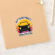 Cool custom road trip sticker for spring break or summer vacation with your family or friends. Personalize with your last name or group above the retro sunset and car silhouette. Perfect for a trip to a cottage or across the country. Drive off into the sunset.