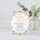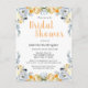 An elegant boho floral bouquet with accents of peach and blue with botanical leafing. Happy and lighthearted; perfect for an outdoor-themed bridal shower brunch.