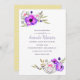 Handwriting typography Spring Wedding Bridal Shower wildflower themed invitation featuring a bright palette with banana, dark ivy, purple macaron and a vibrant yellow.