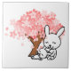 A pair of cute white bunnies sitting under a pink cherry blossom in springtime. Customise by changing background colour.