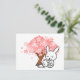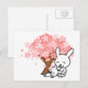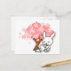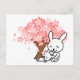 A pair of cute white bunnies sitting under a pink cherry blossom in springtime. Customise by changing background colour.