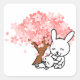 A pair of cute white bunnies sitting under a pink cherry blossom in springtime. Customise by changing background colour.