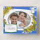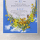 Cheerful yellow buttercup flowers are a floral masterpiece against the blue spring sky with butterflies all in one card for the wedding couple.